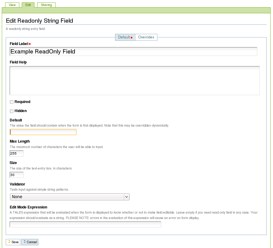 Readonly FormGen String Field (quintagroup.ploneformgen.readonlystringfield) adds Readonly String Field to the PloneFormGen forms.