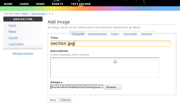 Example. Imagine we have Test Folder on the site. It has the same top background image as the rest of the site. In case you want to add background image for this folder different than the one used on all other pages - let's add a new image into it: