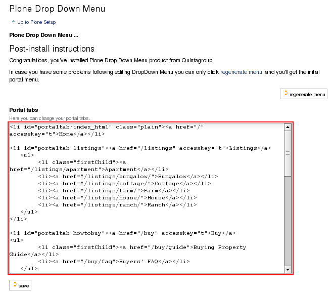 Tabs are organized like unordered list items. For example: tab Buy includes 2 subtabs - Buying Property Guide and Buyers' FAQ. Thus, HTML code for generating this tab looks this way: